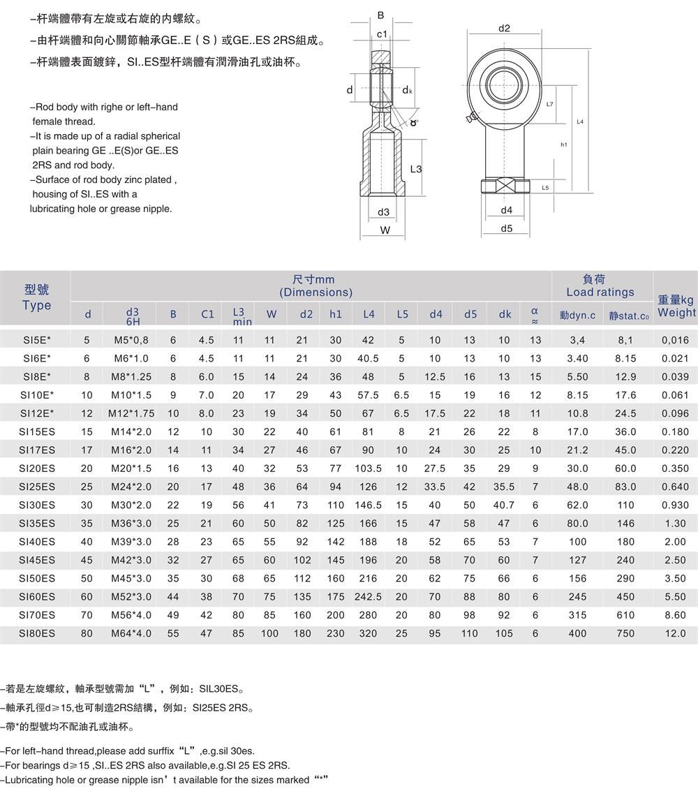 產品名稱:SI-E/SI-ES桿端關節軸承
