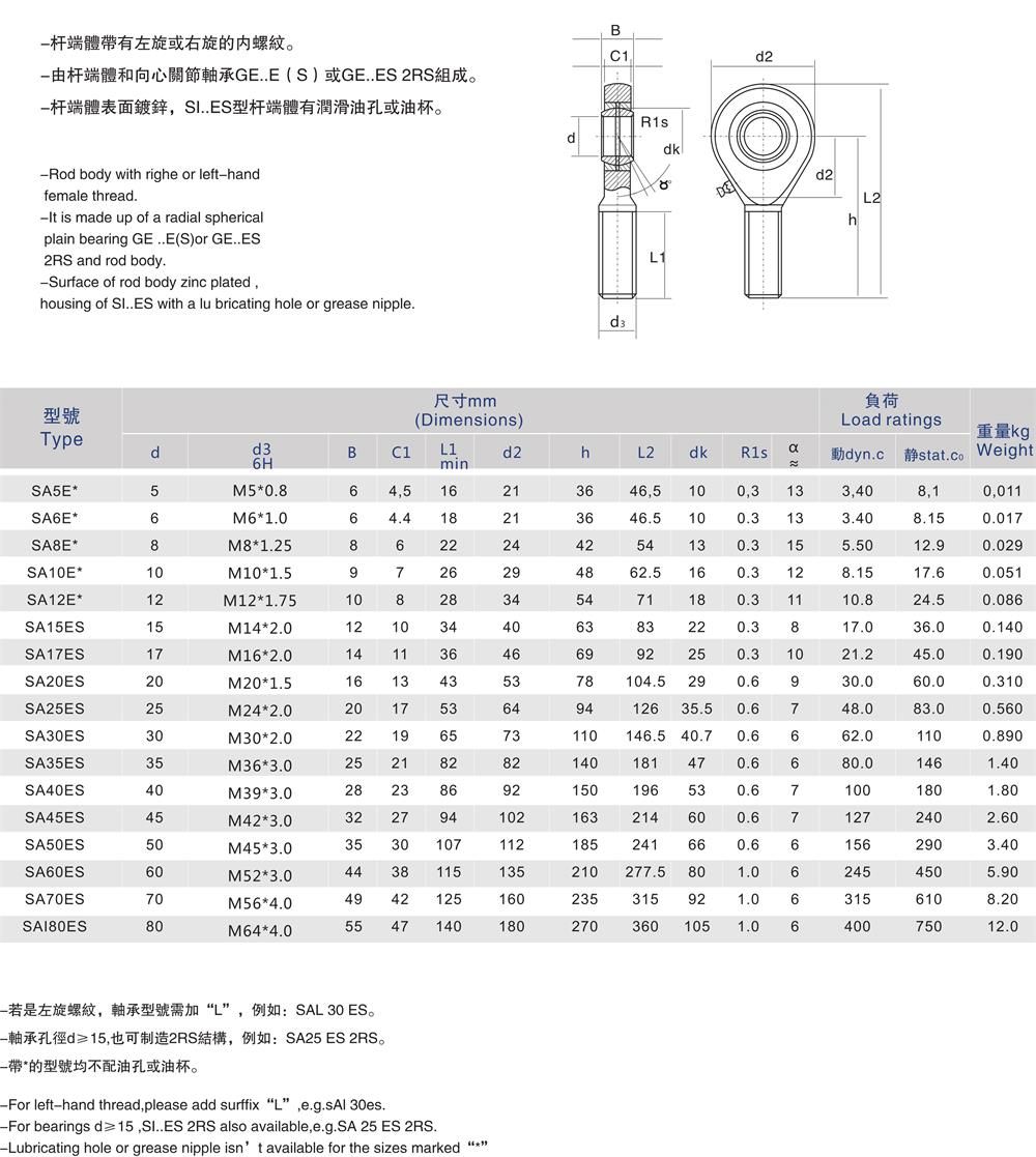 產品名稱:SA-E/SA-ES桿端關節軸承